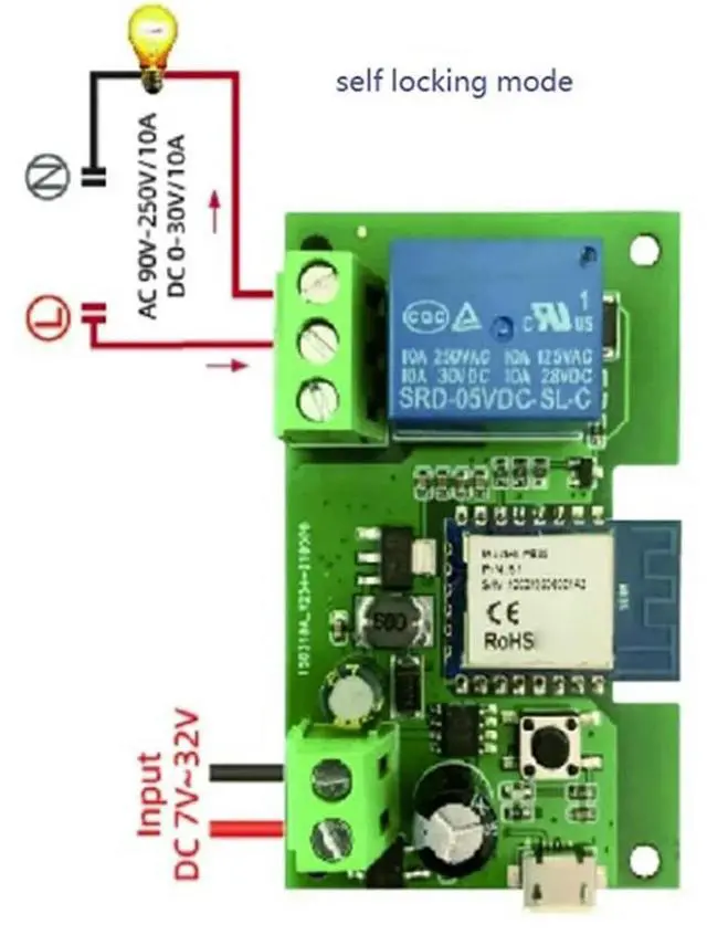 • 3X 1CH RF Switch 7-32V AC DC Tuya Remote Control 433 Light Switch 10A Rele Relay Self-Locking Interlock Inching