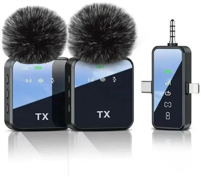 • For For Android Camera Compatible 3 In 1 Microphone Wireless Lavalier Design For Recording Interviews