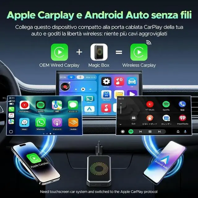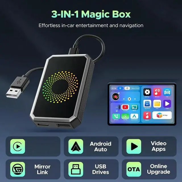 • For Streaming 3-In-1 Magic Video Box Wireless Carplay Adapter Dongle For Wired Car Play And Android Auto For Cars