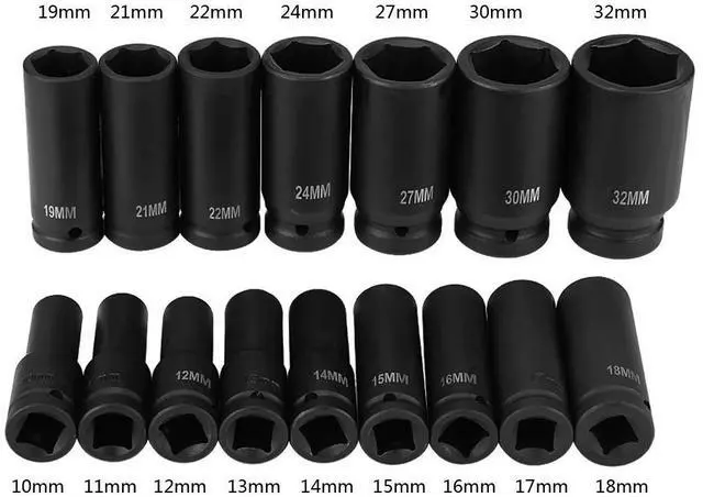 • 16Pcs 1/2" Inch Drive Air Hex Bit Socket Set Repair Tool Kit 10MM-32MM Anti Rust Easy for Repair Mechanical Maintenance