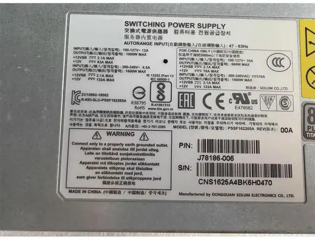 • AXX1600TCRPS J78186-006 1600W Power Supply PSSF162202A