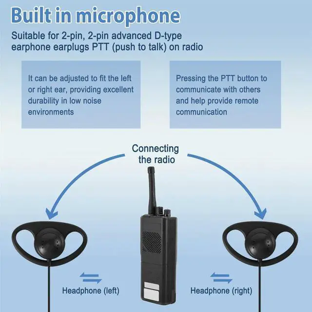 (2 Pack) 2Pin Advanced D Shape Clip-Ear Ptt Headset Earpiece Mic For 2 Way Radios Gp88S Gp300 Gp68 Gp2000 Gp88 Rich