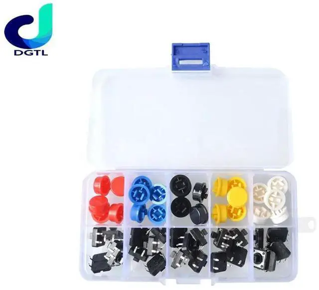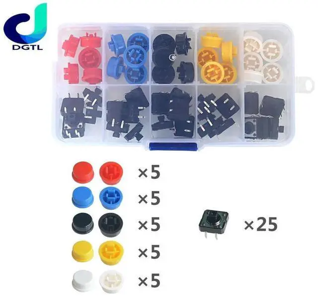 25PCS Tactile Momentary Module Button Momentary 12*12* 7.3MM Micro switch button + 25PCS Tact Cap (5 colors)