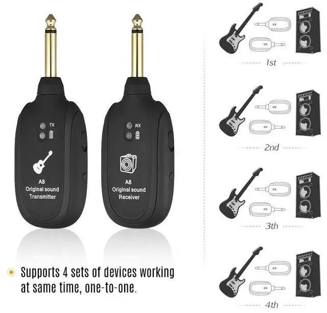• Guitar Wireless System 20Hz-20KHz Acoustic Transmission Rechargeable Transmitter Receiver for Electric Guitar Bass Rich