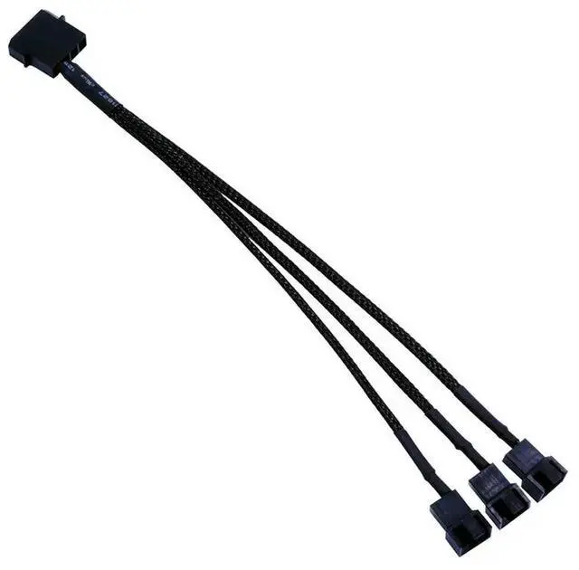 • 4 Pin PWM Fan Cable 1 To 3 Ways 26.5cm Length Extension Cable Connector Black Sleeved 1pcs Splitter