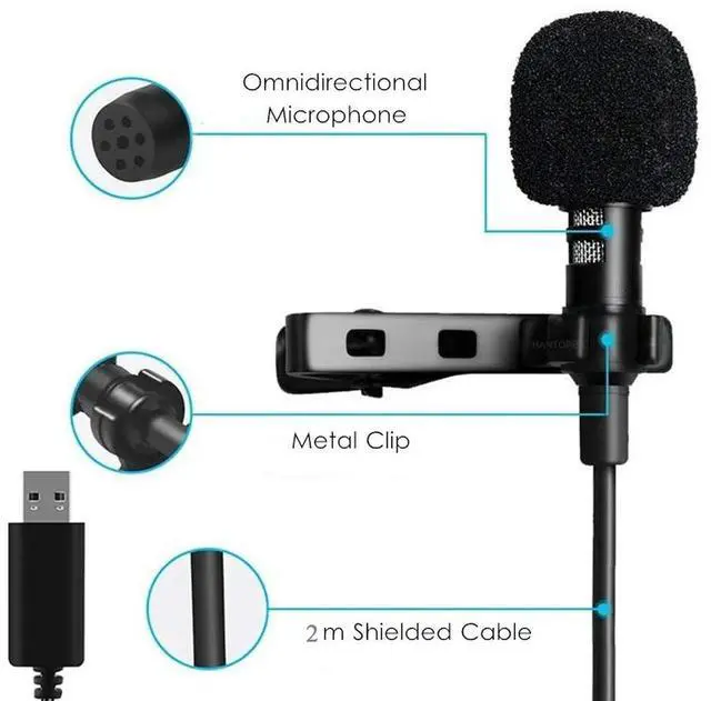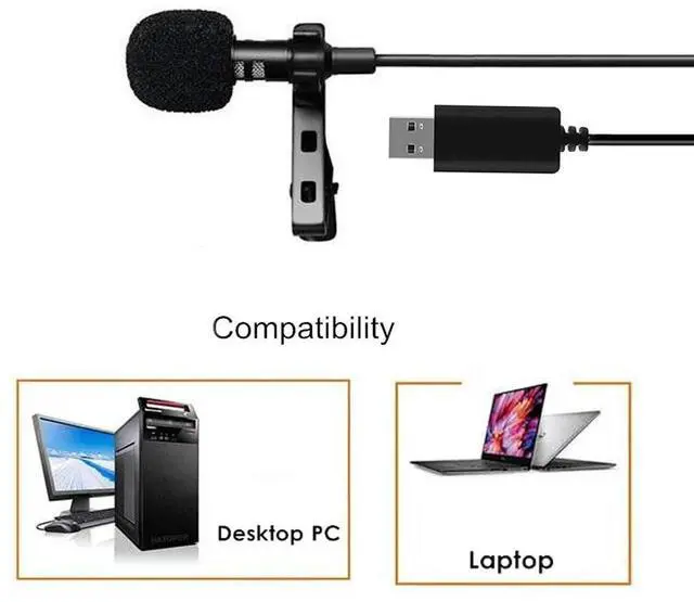 • 1.5m USB Lavalier Microphone Clip-on Lapel Mic for PC Computer Laptop Vocals Streaming Recording Studio YouTube Video Gaming