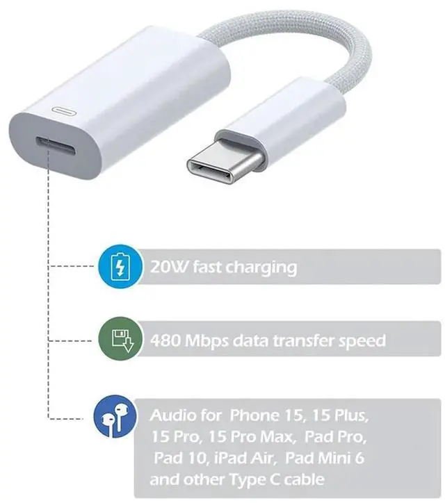• USB C Male To For Interfac Female Cable Converter Support Charging+Headphone+Call+Data Transmission For 1
