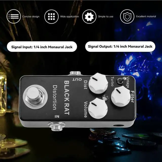 Mosky Black RAT Distortion Mini Guitar Effect Pedal Rich