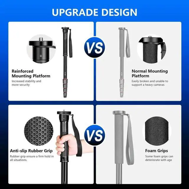 • Lightweight Aluminium E222 Camera Monopod Photography Walking Stick Adapter Mount For Video Camera