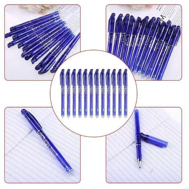• 12 Pcs 0.5mm Luxury Erasable Gel Pen Fine Point Blue Ballpoint Home Office Student Writing Exam Stationery Pens