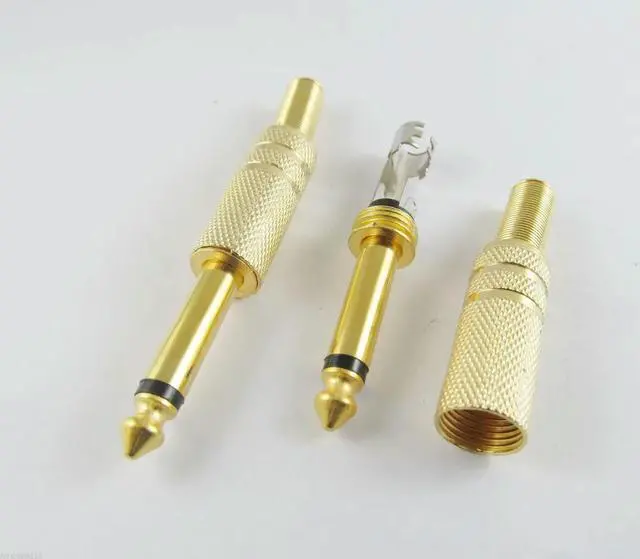 • 1pc 6.35mm 1/4" Mono TS Male Plug l Audio Cable Solder Gold with Spring TS Guitar Speaker MicrophoneAdapter Connector