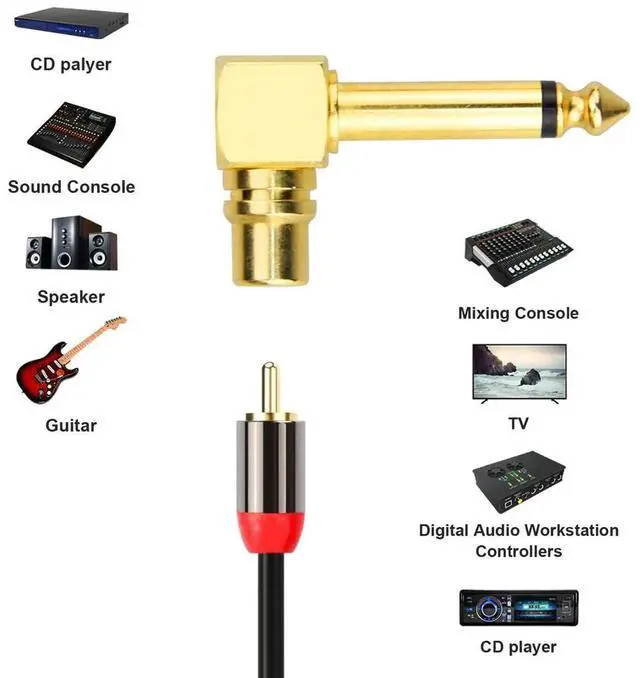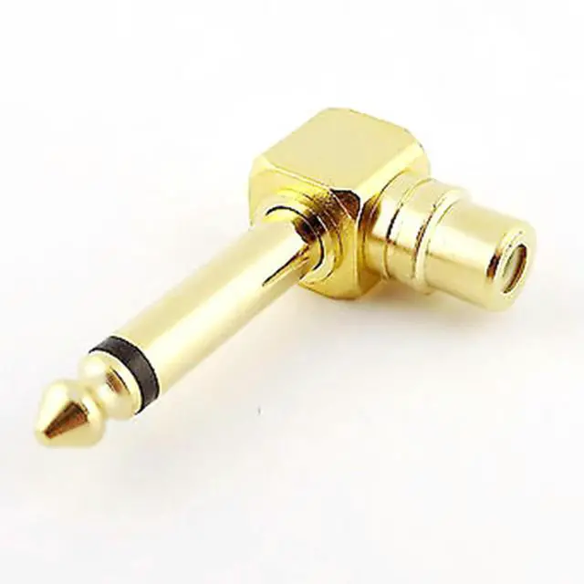 • 1pc Gold Copper RCA Phono Female to 6.35mm 1/4" Male Mono Right Angle True Audio Headphone Guitar Microphone Adapter Connector