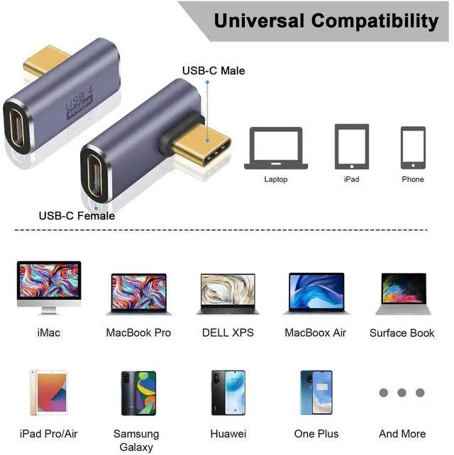 • 1x USB Right/Left Angle Type C Adapter USB 4 Cable 40Gbps Extender 8K Video Display 100W Charging for Thunderbolt 4/3 HUB Mobile