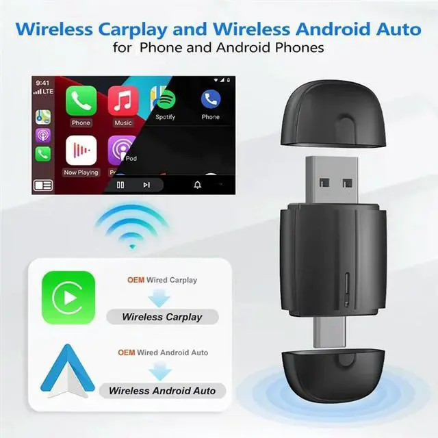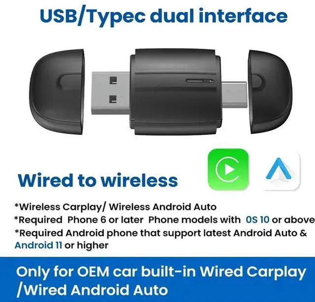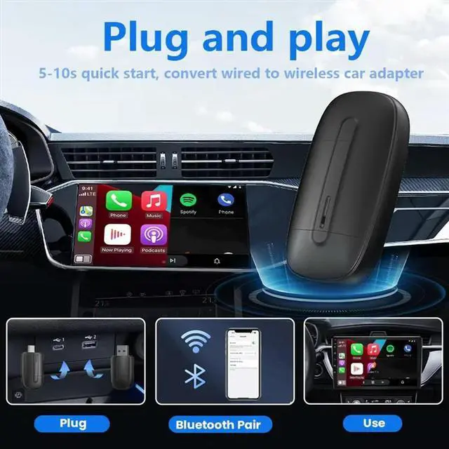 • Wireless Carplay Adapter Android Auto Wireless Carplay Adapter Dongle USB Type-C 5G Wireless Control Adapter Fo