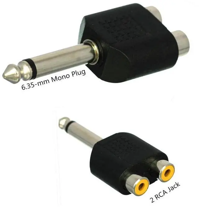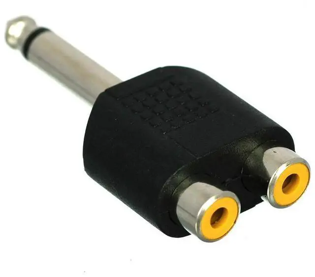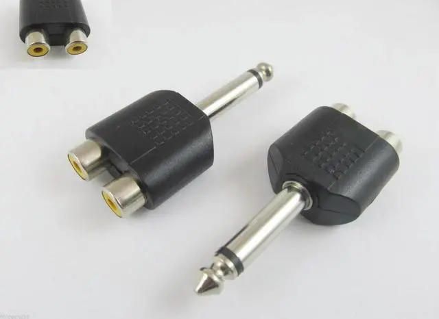 • 1pc 6.35mm 1/4" Male Mono To 2 Dual RCA Female Y Splitter Audio Adapter Connector
