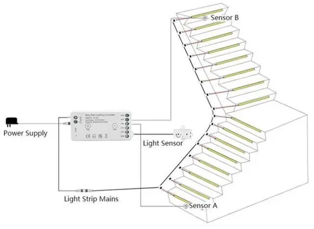 • Tuya APP DC 12V 24V 8A Easy LED Stair Lighting Controller PIR Infrared Human Motion Daylight Sensor Switch