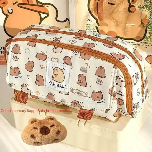 • Creative Three-layer Pen Bag Large Capacity Capybara Stationery Bag Multifunctional Pencil Case Student Gift School Supplies