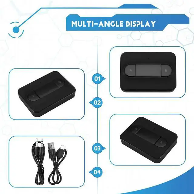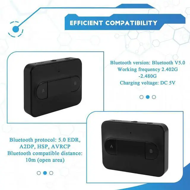 • Bluetooth 5.0 Transmitter Adapter Dual Link Link Headphones Home Sound System Black