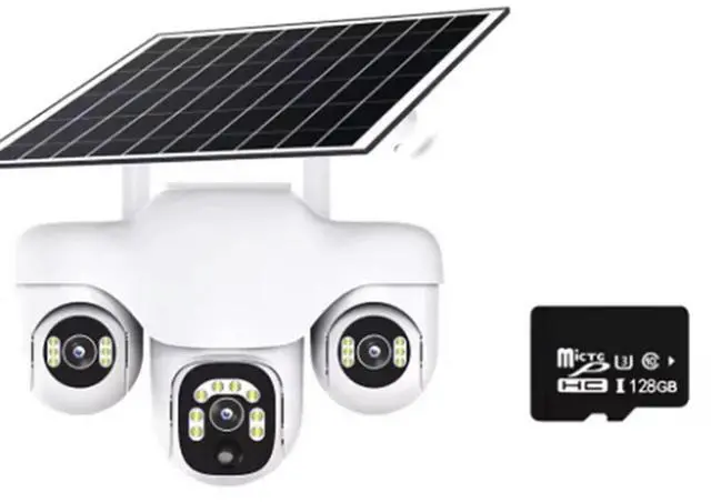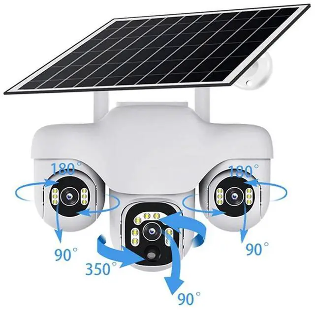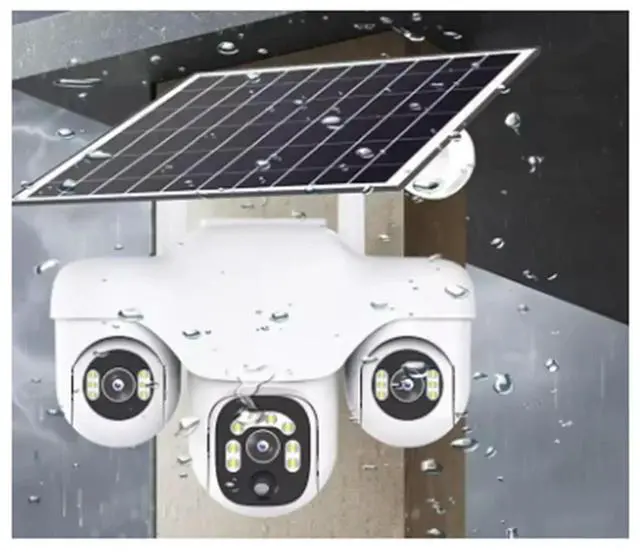 • Wireless Outdoor IP Camera With Three Screens Three Lens PTZ 2-Way Audio Human Auto Tracking Surveillance System