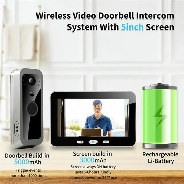 • Tuya Outdoor Video Intercom 1080P HD 2MP Wireless Door Camera System PIR Motion Detection With 5Inch Monitor