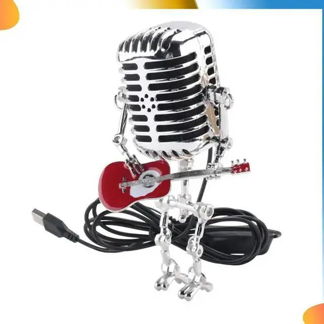• 2X Retro Style Vintage Microphone Robot Desk Lamp, Vintage Microphone Robot Touch Dimmer Lamp Table Lamp Red