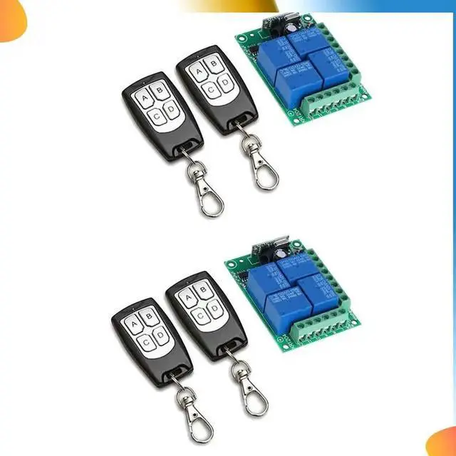 • 2X Universal Wireless Remote Control Switch DC 12V 4CH Relay Receiver Module With 4 Channel RF Remote 433Mhz Transmitter
