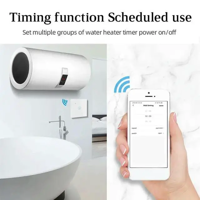 • Glass Panel Wall Mounted 40A Touch Water Heater Switch Tuya Life APP Timer Voice Control Functionality Pow