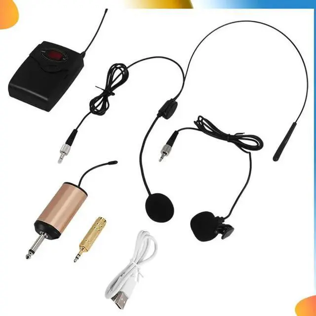 Wireless Microphone Set With Head-Wear + Lavalier Lapel Mics Transmitter Receiver UHF Frequency For Speech Teaching
