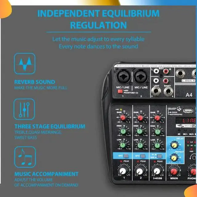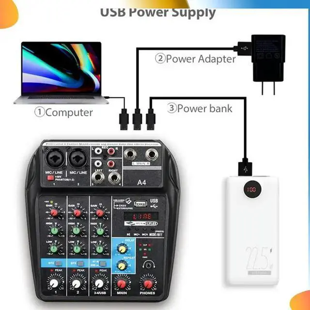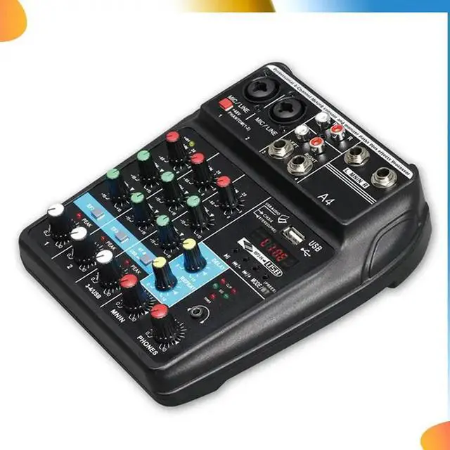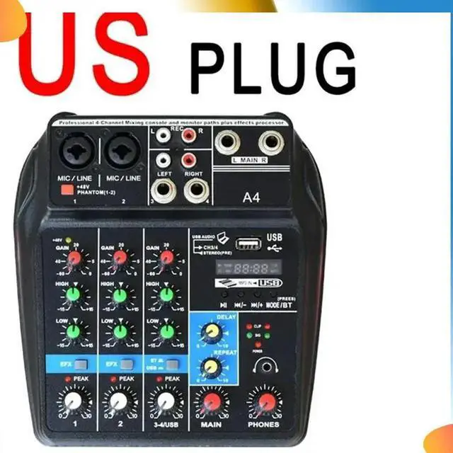 • Professional 4 Channel Digital Mixer Sound Card Microphone Mobile Phone Live Broadcast Recording DJ Audio Equipment(US)