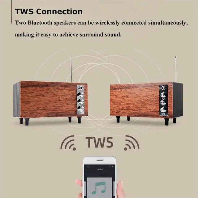 • Portable FM Radio Retro Classic Radios Wireless Bluetooth Speaker Desktop Bluetooth Soundbar Music Player