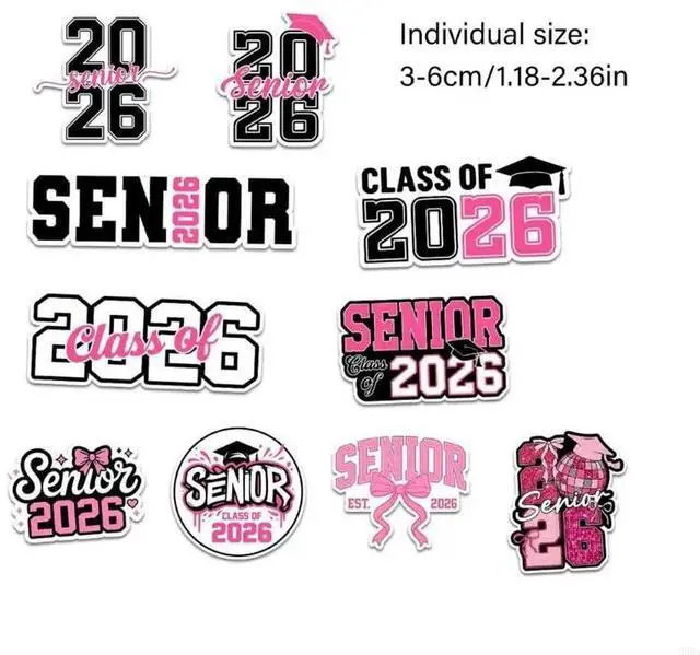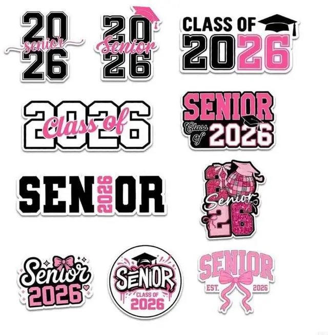 • 10PCS Senior 2026 Graduation Stickers Permanent PVC Decals For Scrapbooks School Supplies Gift College Class Of 2026
