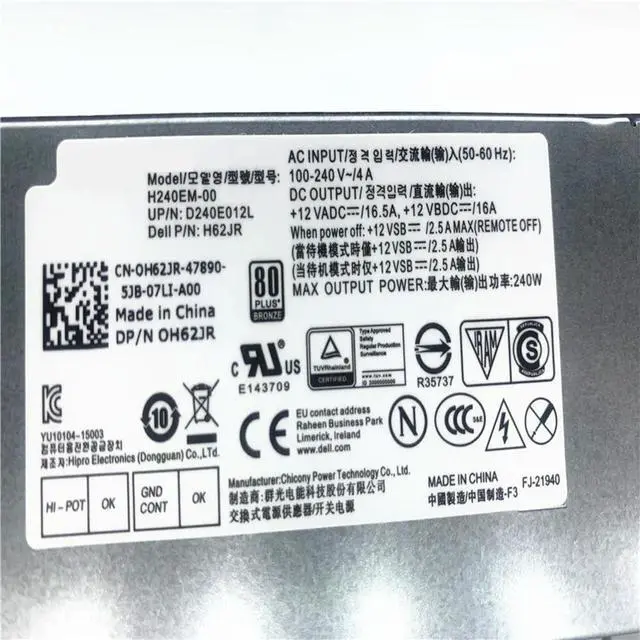 • Power Supply Optiplex 3040 3046 3050 5040 7040 7050 V3250 V3267 V3268 8Pin 240W For H240EM-00 H62JR 0H62JR