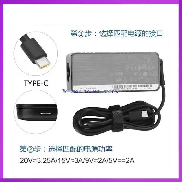 • For Xiaoxin Air15/16 Laptop E580 65W Power Adapter 20V 3.25A Fast Charging Type-C