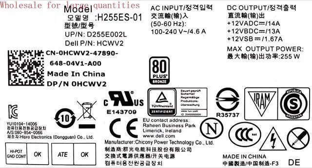 • For 3020 7020 9020 SFF Small Chassis Power Supply L/H255AS-00 H315ES-00 D315ES