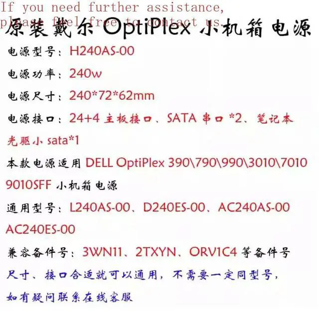 For SFF Small Chassis Power Supply H240AS-00 3WN11 L240AS-00 AC240AS-00