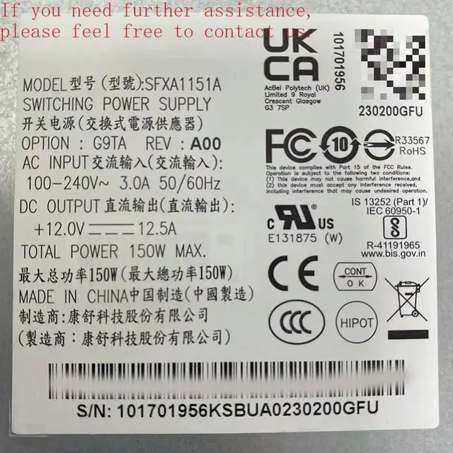 • For Genuine Power Adapter SFXA1151A B Video Recorder Special Power Supply 150W