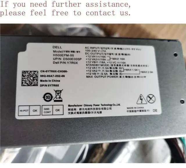 • FOR Optiplex 7080MT 7070MT 7060MT 3050MT 3650 3670 3671 5090 3260 3681MT 500W Power Supply D500EPM-00 H500EPM-00