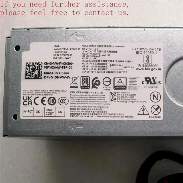 • For 3710 3910 Power Supply 260W HVW4Y H260EBS-00 D260E-005P