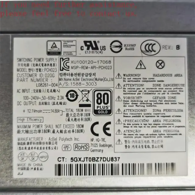 • For 282/286/280/288 Pro G5 G4 G3MT PCH023 L08261-004 Power Supply