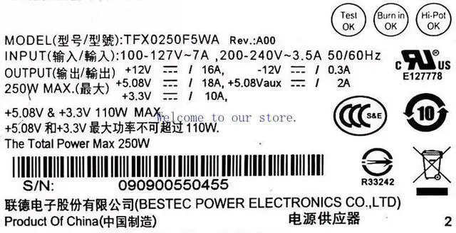 • For Universal vostro220s260s PC6038TFX0250F5WA Computer Mainframe Small Power Supply