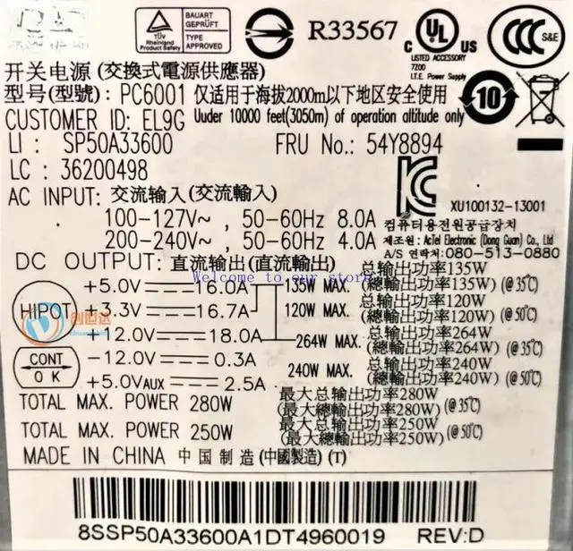 For 280W power supply, Kangshu PC6001 PC9008 HK380-12GP DPS-280FBA