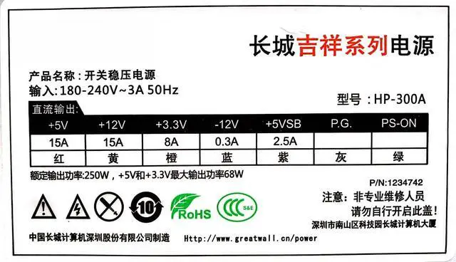 • For Great Wall desktop power supply, auspicious series 300A rated 250W computer host chassis power supply, silent