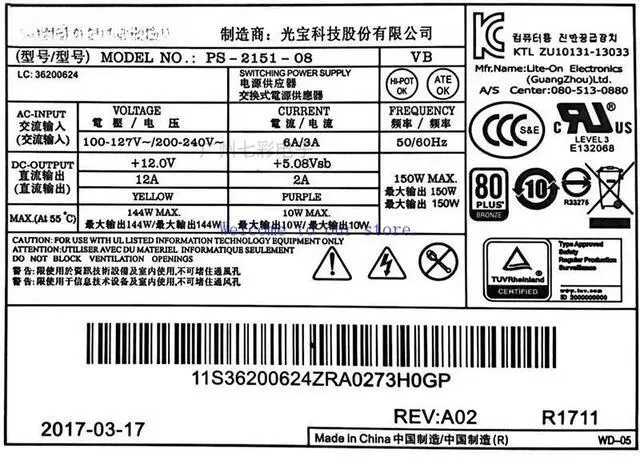 For All-in-One Power Supply B5040 B4655 PS-2151-08 VB 36200624 APC003