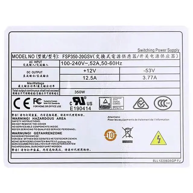 • For Hikram 7932N 7916N video recorder POE power supply FSP350-20GSV/DPS-300AB-81B