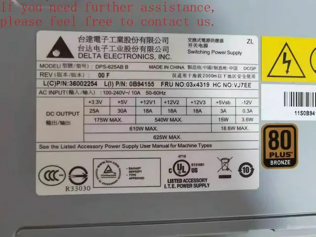 Power Supply For ThinkServer TD340 625W DPS-625AB B 03X4319 36002654