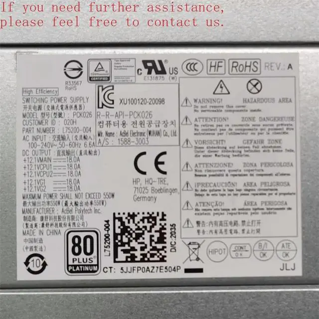 • For 800, 880 G6, G8, G9 PCK026 550W Power Supply L75200-004 PA-5551-1HA