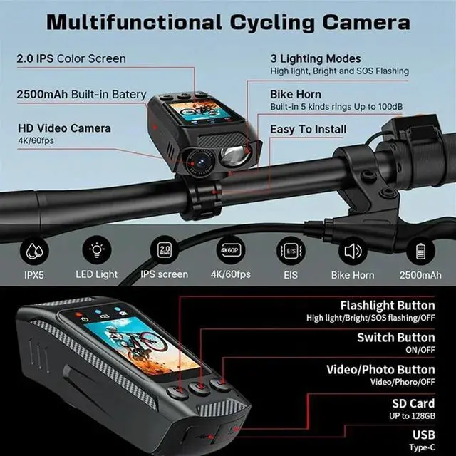 • 3 in 1 Multifunctional Sports DV Dash Cam with Lighted Speaker 4K Bicycle Helmet Sports Camera Motorcycle Riding
