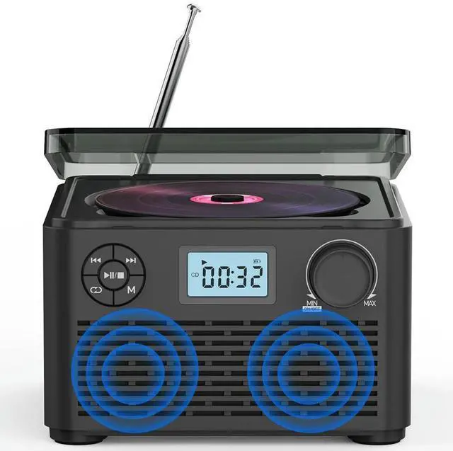 • CD Player Vintage 4000mAh Bluetooth Music Disk Album Disc CD Player FM