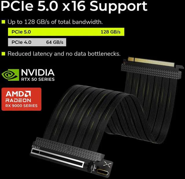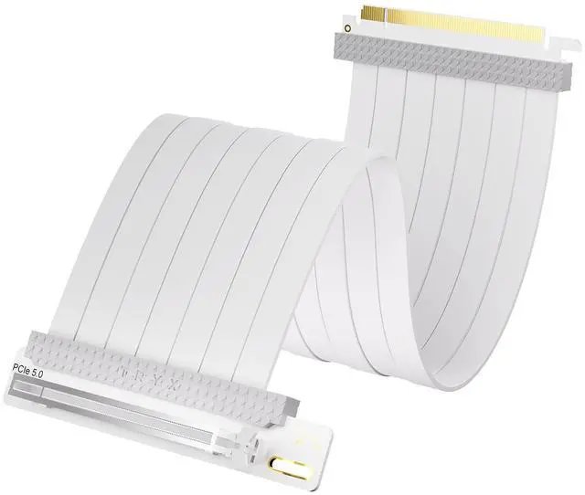 TRYX STRING PCIE 5.0 riser cable white delivers up to 128 GB/s bidirectional bandwidthtwice the speed of PCIe 4.0. It is optimized for RTX 50 series and RX 9000 series GPUs, providing ultimate performance with ultra-low latency.