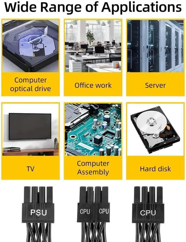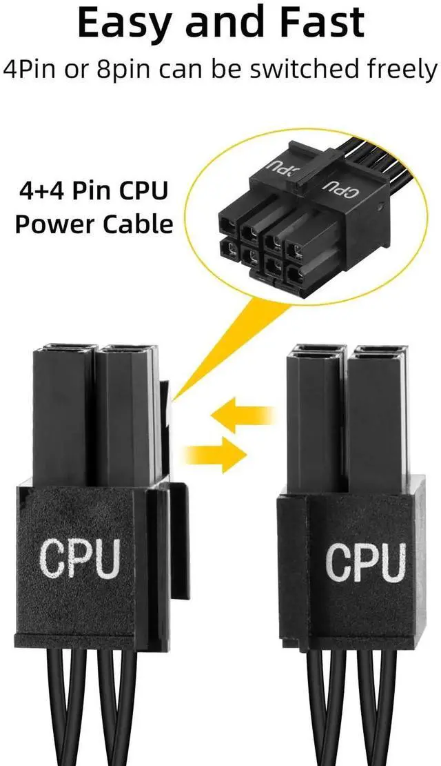 Upgrade your PC's power connections with a reliable solution engineered for stability,durability,and broad compatibility.This 8Pin CPU to 8Pin and 4+4 Pin power cable bridges the gap between motherboards and power supplies,resolving common interface mismatches in both new and older systems whether you're building a new rig,upgrading an old PSU,or replacing damaged cables